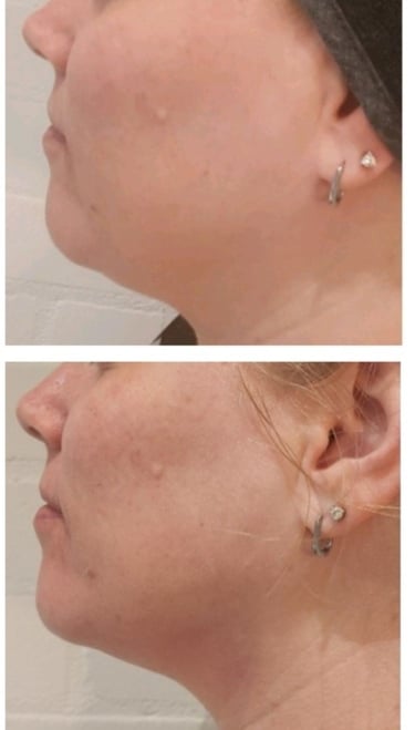 Zichtbare verstrakking van de wangen en kaaklijn